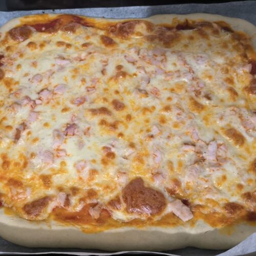 - · Precalienta el horno a 220°C· Estira la masa sobre superficie enharinada· Coloca en bandeja de horno· Añade tus ingredientes favoritos· Hornea 12-15 minutos hasta bordes dorados